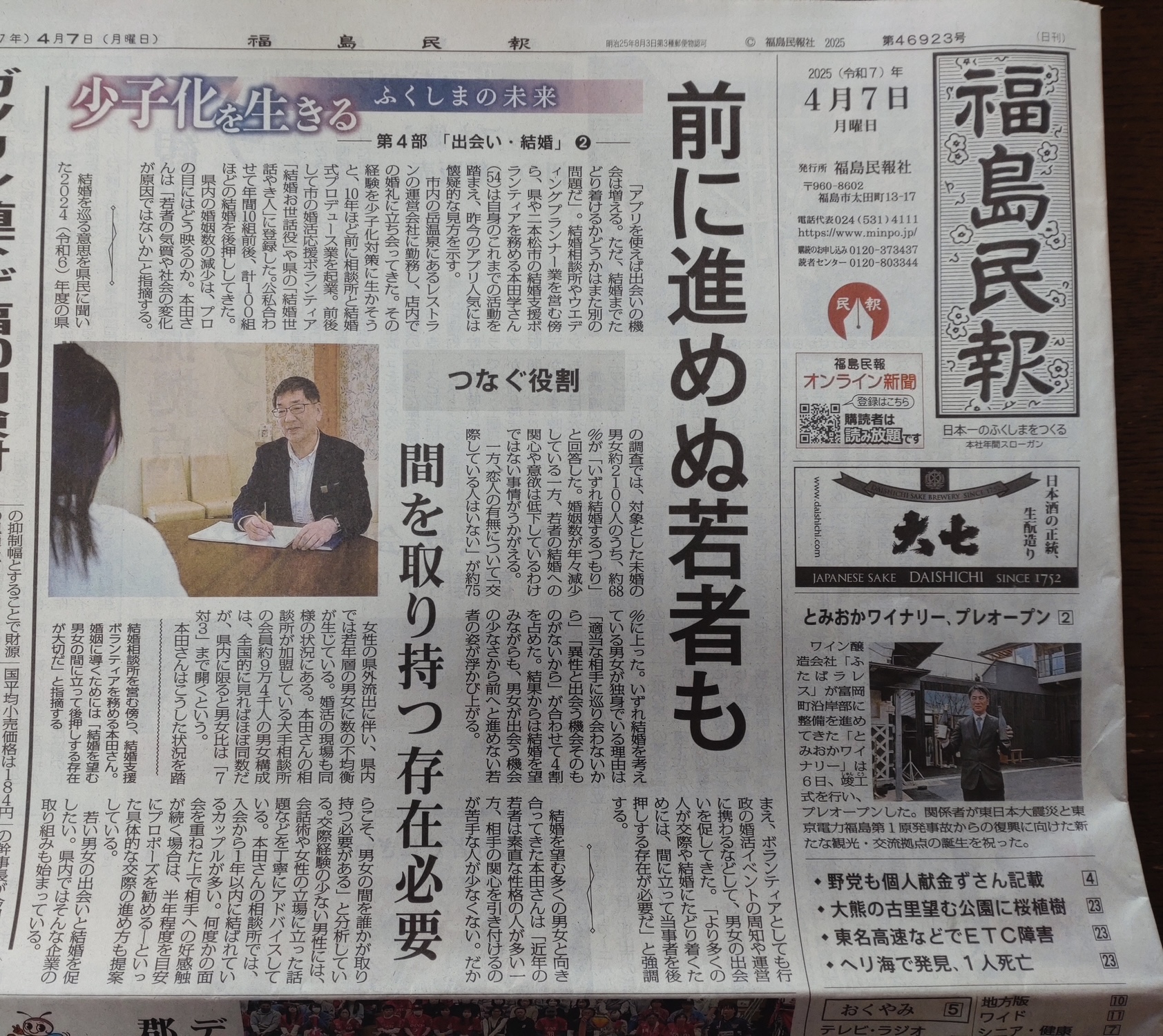福島県の婚活事情【少子化を生きる】福島民報新聞社さまからの取材!